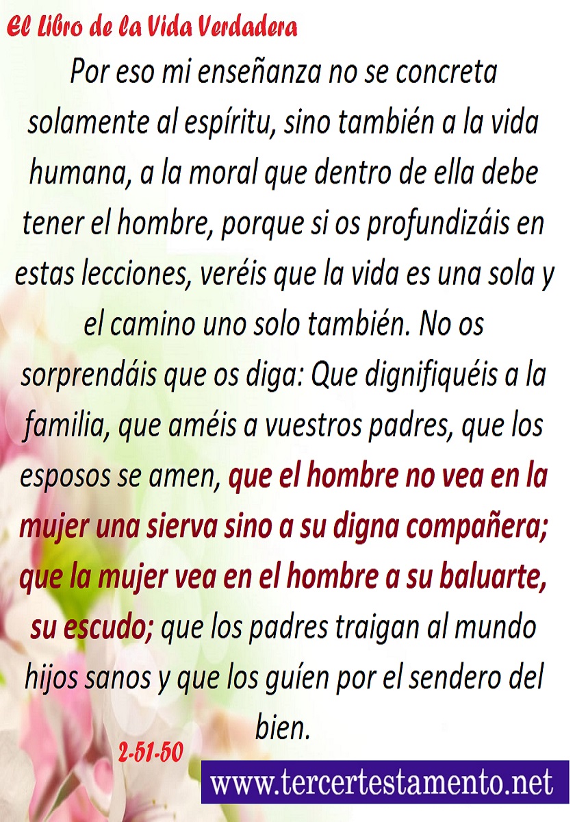 En este plano material no se nos pide perfección, pero sí cada vez la oportunidad de ir mejorando. Que no seamos ya el del ojo por ojo y diente por diente, como muchas veces estábamos acostumbrados a actuar ante la ofensa y el agravio de nuestro semejante. Que en nosotros ya hay Enseñanza, ya existe cierta elevación espiritual que es sensibilidad del pensamiento y del sentimiento, lo cual aún no lo tiene la mayor parte de nuestra hermana humanidad.